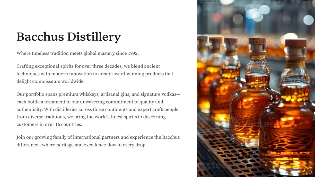 At Bacchus, we believe in long-term value creation — for our customers, our distributors, and our investors. Whether you're looking to import high-quality spirits, launch your own label, or partner with an experienced distillery, we are ready to raise a toast to your success.